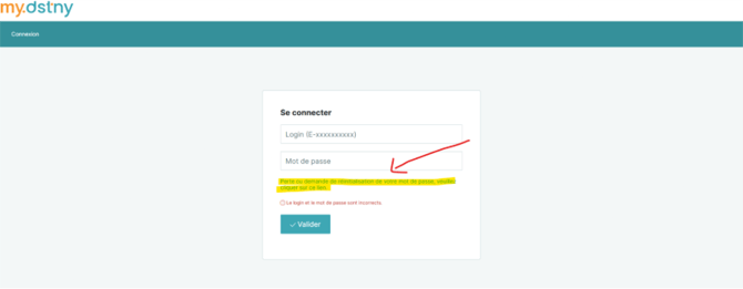- Sur la page de connexion à MyDstny, après avoir tenté de vous connecter, cliquez sur